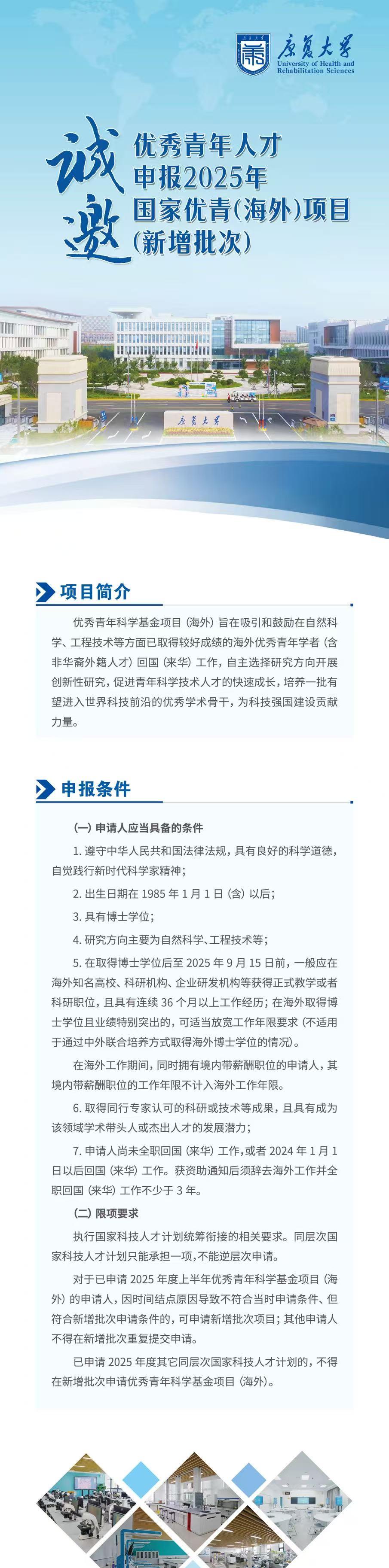 康復(fù)大學(xué)誠邀優(yōu)秀青年人才申報(bào)2025年國家優(yōu)青(海外)項(xiàng)目(新增批次)
