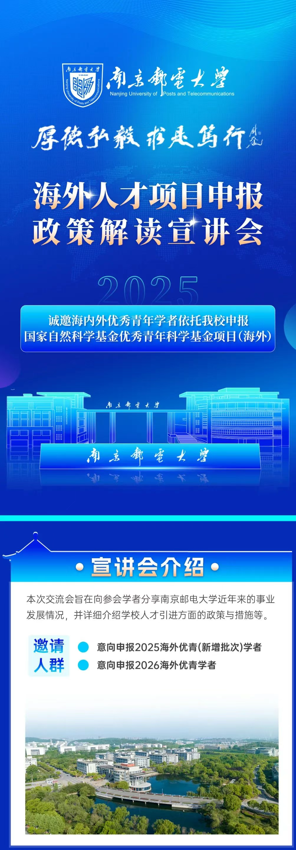 8月21日丨南京郵電大學(xué)2025海外人才項(xiàng)目申報(bào)政策解讀宣講會,誠邀學(xué)者報(bào)名交流!