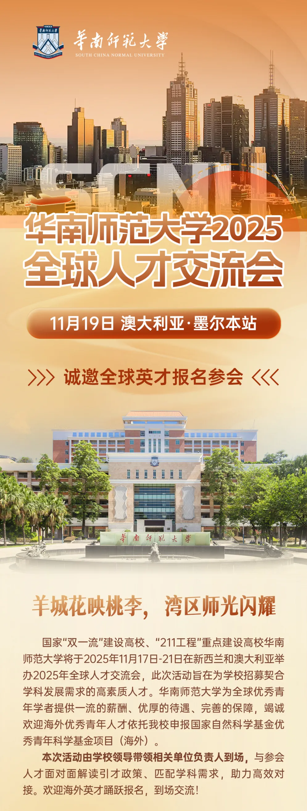華南師范大學(xué)誠(chéng)邀符合條件的國(guó)際優(yōu)秀青年學(xué)者依托我校