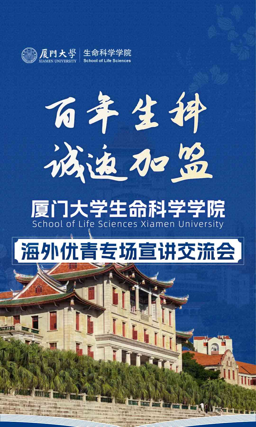 廈門大學(xué)生命科學(xué)學(xué)院2026海外優(yōu)青專場(chǎng)宣講交流會(huì),誠(chéng)邀海內(nèi)外英才參會(huì)!